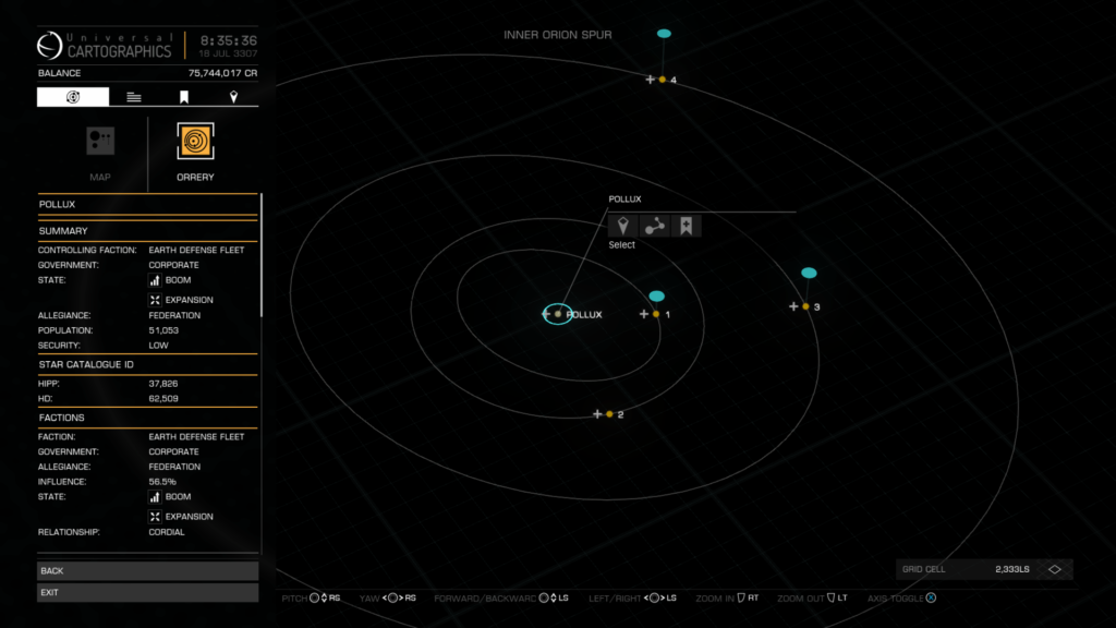 Pollux system Orrery at time of visit